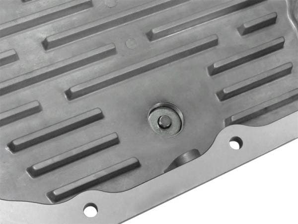 This Transmission Pan does not require modification/bending of the factory hard lines and comes with necessary hardware for installation. This Transmission Pan has an increased fluid capacity of approximately two quarts over stock for better performance over a longer duration. Built-in internal and external fins transfer heat from the fluid to the outside air for maximum cooling. This pan incorporates a magnetic drain plug to capture loose particles for maximum protection. It's mounted on the bottom of the pan, making fluid changes much easier and cleaner.
