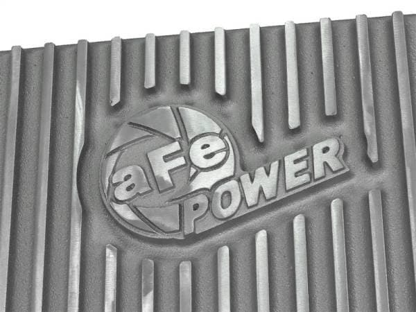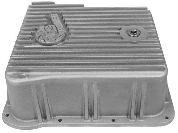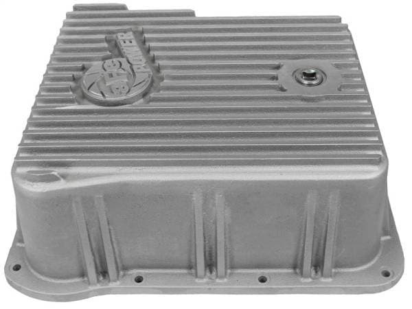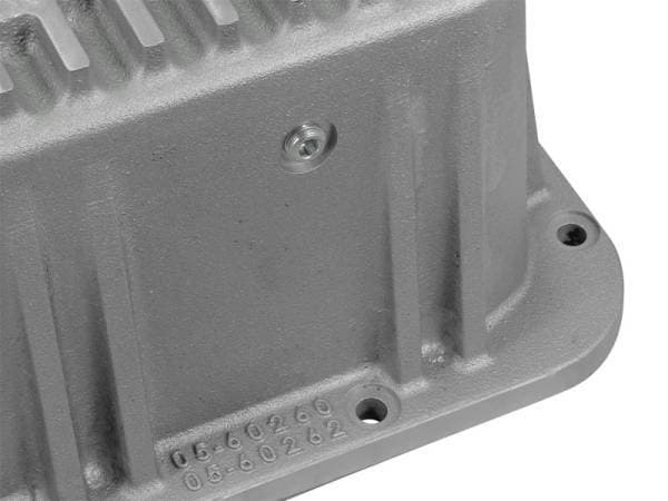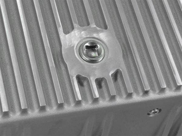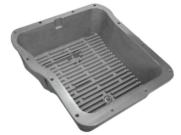 aFe POWER Street Series deep transmission pan brings performance engineering to the protection of your trucks transmission. This transmission pan has additional capacity for 3 to 4 more quarts over stock at the factory line, a magnetic drain plug and a 1/8" NPT port for your temperature sensor. Built-in internal and external fins transfer heat from the fluid to the outside air for maximum cooling. This transmission pan is constructed out of durable die-cast aluminum with reinforced ribs and a wrinkle black powder-coating for maximum strength and styling.