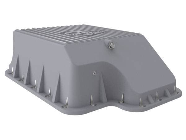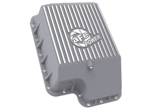 aFe POWER Street Series deep transmission pan brings performance engineering to the protection of your trucks transmission. This transmission pan has additional capacity for 7-1/2 more quarts over stock at the factory line, a magnetic drain plug and a 1/8" NPT port for your temperature sensor. Built-in internal and external fins transfer heat from the fluid to the outside air for maximum cooling. This transmission pan is constructed out of durable die-cast A380 aluminum with reinforced ribs and a raw finsh with machined accents for maximum strength and styling.