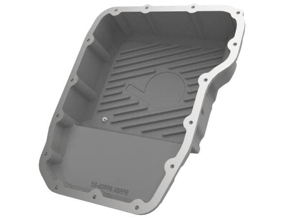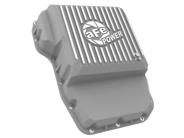 aFe Power's new deep transmission pan brings performance engineering to the protection of your trucks transmission. This transmission pan has additional capacity for 2 more quarts over stock at the factory line and a magnetic drain plug to capture loos particles. Built-in internal and external fins transfer heat from the fluid to the outside air for maximum cooling. This transmission pan is constructed out of durable cast aluminum with reinforced ribs and a raw finish with machined accents for maximum strength and styling.