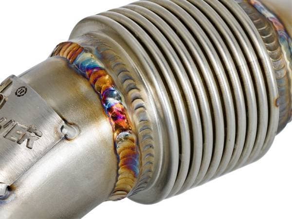 Construction: These unique up pipes are constructed of 2" mandrel-bent 304 stainless steel tubing with a .120" wall for strength and durability. 2" Inner Liner Flex Pipes: The down-pipes utilizes heavy duty 2" flex tubes with internal inner liner. Leak-Free Seal: High quality 3/8" thick flanges are used for a complete 360 degree sealing surface
