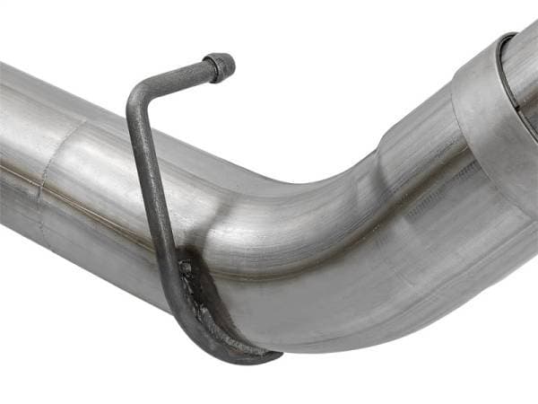 Simple Installation: All systems use factory mounting locations providing stability and hassle-free installation. Leak-Free Seal: High quality band clamps are included for a complete 360 degree sealing surface. OE Fit: OE-style bayonet hangers are used to maintain a stable pipe location during high vibration and high heat conditions. The bayonet tip holds the hanger bushing in place for an OE-style fit that does not change with time. Flow and Performance This exhaust system is constructed of 4" mandrel-bent stainless steel tubing for maximum flow. Smooth transition bends allow for low turbulence, increasing horsepower, torque and lowering EGT's. 5" Diameter Black Intercooled Tips: Finishing off the exhaust are 5" diameter, Hi-Temp black, stainless steel straight cut tips with intercooling vents designed to reduce exhaust gas temperatures at the tailpipe. A unique stainless steel laser-cut aFe Power logo plate is riveted on for an aggressive style. **Cutting stock exhaust is required.