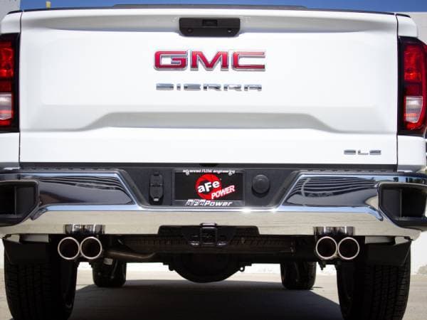 Your Silverado/Sierra can perform and sound as good as it looks with this aFe POWER Vulcan Series cat-back exhaust system. Counstructed from mandrel-bent 304 stainless steel tubing and high-flow muffler, this system improves performance across the power band and delivers a deep, aggressive exhaust tone. 100% MIG-welded for strength and durability, with quad 4 IN 304 stainless steel exhaust tips for that custom look.