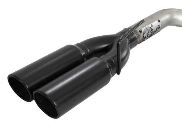 This DPF-back exhaust system is constructed of 3" mandrel-bent 304 stainless steel tubing for maximum strength and durability. Finishing off this exhaust system are dual 4" diameter black 304 stainless steel exhaust tips. The tips feature a laser etched aFe POWER logo for a unique style. Utilizing factory style hangers this system is a direct bolt-on system, which requires no cutting or modifications for a hassle-free installation. This DPF-back exhaust system uses a heavy duty flex pipe with an internal interlock liner for added strength and durability. Utilizing state-of-the-art computer-aided design technology, this exhaust system is designed for custom, high tolerance factory fitment. 100% MIG-Welded for race-proven strength and durability. Intercooled tubing provides reduction in exhaust gas temperatures.