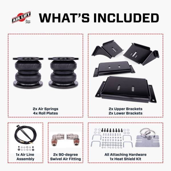 The Air Lift 7500 XL Ultimate kit offers maximum load-leveling power for your Silverado or Sierra 3500—engineered for confidence, comfort, and control. Our fully adjustable air springs are the perfect upgrade for your vehicle and work to eliminate issues when towing and hauling, like squat, poor headlight aim, trailer sway, body roll, and bottoming out. The kit’s pair of massive 7-inch, double-convoluted bellows air springs allow for greater leveling abilities at lower air pressures than similar systems, keeping your cargo safe and secure while ensuring a comfortable ride. As the leader in air suspension products for over 75 years, Air Lift is committed to delivering quality load support parts that last. The key suspension components have all been torture-tested to ensure quality, longevity, and customer satisfaction. With a lifetime warranty and a 60-day ride satisfaction guarantee, you can buy this kit with peace of mind.