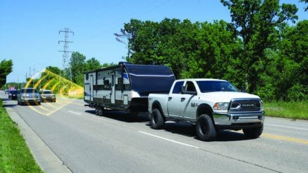 Towtal View LaneGuard by Air Lift offers Blind Spot Detection (BSD) and Lane Change Assist (LCA). These features cover blind spots, make lane changes safer, and include LED light strips mounted on the front of the trailer for clear visuals.; Towtal View LaneGuard by Air Lift offers Blind Spot Detection (BSD) and Lane Change Assist (LCA). These features cover blind spots; make lane changes safer; and include LED light strips mounted on the front of the trailer for clear visuals.