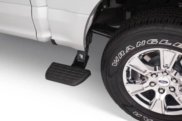 Side steps for hard-working trucks. The AMP Research Bedstep2 mounts just behind the cab, forward of the rear wheel, providing a faster, easier and safer route to access toolboxes, equipment and cargo in the bed. Easily installed, this frame-mounted, retractable truck step can be mounted on either side of the truck box, and it flips down or retracts with just the nudge of your foot.