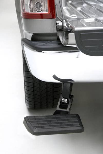 Go ahead and step on it. Bedstep is a real time saver. Not to mention knee and back saver. Strong and rugged, this non-slip, retractable bumper step quickly flips down with the nudge of a foot providing a faster, easier and safer way to load or unload your pickups cargo. Supports up to 300 lbs. Frame mounts under the rear bumper so it works even with an open tailgate or when towing.