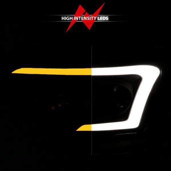Crystal Headlight Set w/ Light Bar Style - Switchback - Black Housing - Clear Lens - Pair; Crystal Headlight Set; Clear Lens; Black Housing; w/Light Bar Switchback; Pair