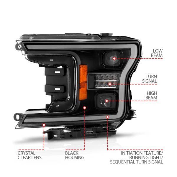 LED Projector Headlights w/ Light Bar Style - Switchback - Sequential - Black Housing - Clear Lens - Pair - w/ Initiation Light; LED Projector Headlight; Clear Lens; Black Housing; w/Light Bar Switchback; Sequential; w/Initiation Light; Pair