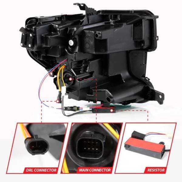 LED Projector Headlight; Black Housing; Full LED Trio Projector Switchback Bar; w/DRL And Initiation Feature; Black Housing Full LED Trio Projector Switchback Bar w/DRL & Initiation Feature