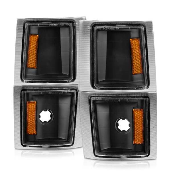 Cornering Light Assembly - Clear Lens - Black Housing - Amber Reflector - 4 pc - Pair; Cornering Light Assembly; Euro; Clear Lens; Black Housing; w/Amber Reflector