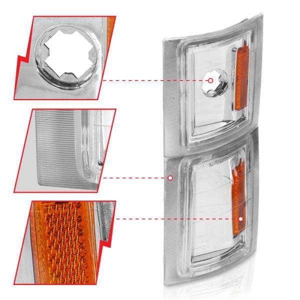 Cornering Light Assembly - Clear Lens - Chrome Housing - Amber Reflector - 4 pc - Pair; Cornering Light Assembly; Euro; Clear Lens; Amber Reflector; Pair