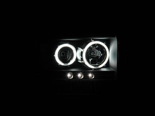 Projector Headlight Set, w/Halo, Clear Lens, Black Housing, w/1 pc. LED Strip, Pair, CCFL Guaranteed To Improve Your Vehicles Appearance. Rigorously Tested For Fit And Function. Simple Plug And Play. No Modifications Required. Easy Installation Using Common Hand Tools. Uses Stock Mounting Locations And Hardware. D.O.T. Compliant To S.A.E. Standards. Sold As A Pair. Does Not Fit F-250 Light Duty Or Sealed Beam Models.