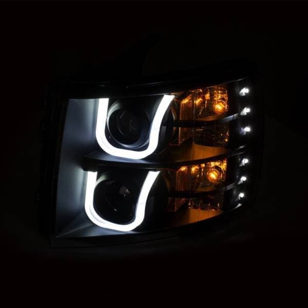 Projector Headlights w/ U-Bar Switchback Black w/ Amber; Projector Headlight Set; Black w/Amber; w/Switchback