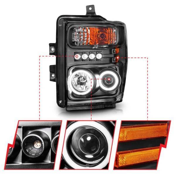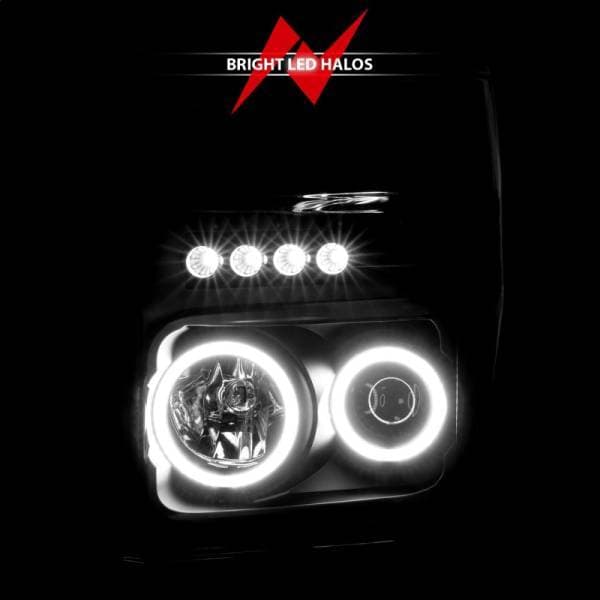 Projector Headlight Set w/Halo; Clear Lens; Black Housing; RX Halo; w/LED Parking/Projector/Halo; Pair; Projector Headlight Set w/Halo - Clear Lens - Black Housing - Pair - CCFL