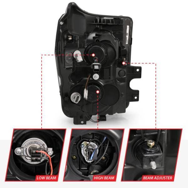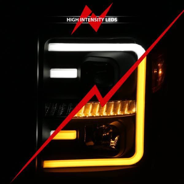 Product:ANZO 2011-2016 Ford F250 Projector Headlights w/ Plank Style Switchback Black w/ Amber
