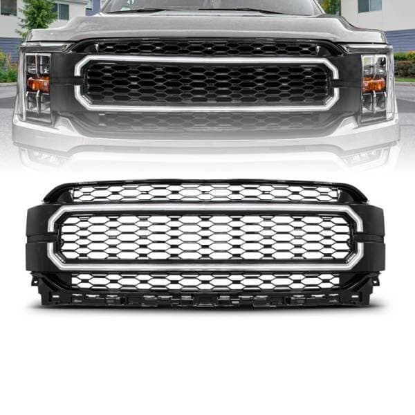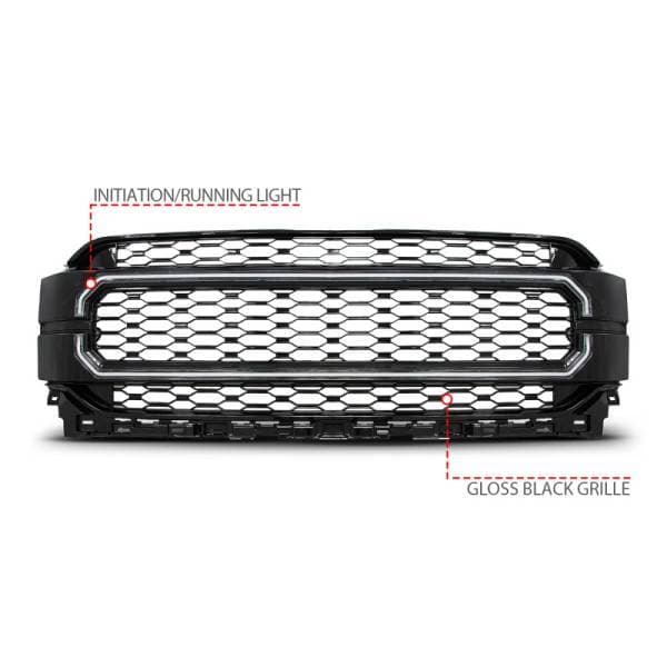 Ford F-150 21- 23 Nexum Series Black Led Grille W/ Ignition Initiation Feature & Running Light Bar; Grille w/ LED; Black; Front; w/ Initiation And Running Light/DRL