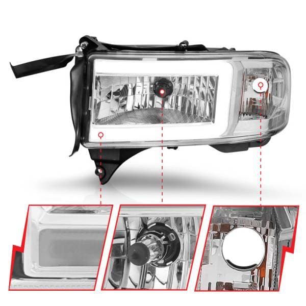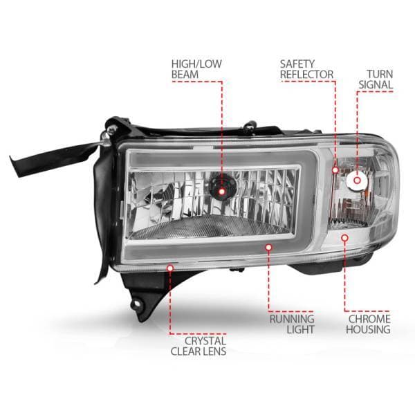 Crystal Headlight Set w/ Light Bar Style - Chrome Housing - Clear Lens - Pair; LED Crystal Headlight Set; w/Light Bar; Chrome Housing; Pair