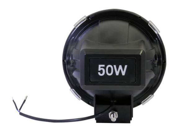 HID Off Road Light, 7 in., 50 Watt, w/AnzoUSA Red Bezel Built To Last. Wiring Harness And Switch Included. Weather Resistant Housing.