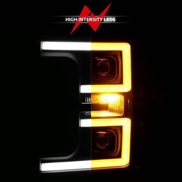 Projector Headlight Set; w/Plank Style Switchback; Black w/Amber; Projector Headlights w/ U-Bar Switchback Black w/ Amber