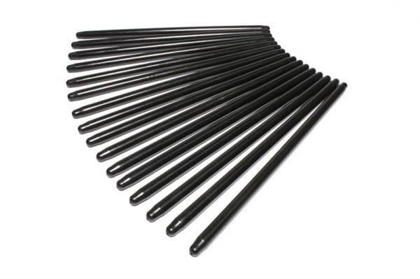 Magnum pushrods from COMP Cams offer an affordable solution for your .080" wall chromemoly Pushrod needs. Designed to withstand the stresses of a high performance engine, Magnum pushrods are head-treated for extended durability and have precision formed, reinforced ends. Magnum pushrods are black-oxide finished with their part number and length laser etched onto the surface for easy identification. Available individually and in sets of 8 or 16. Ideal for street performance and mild race applications.