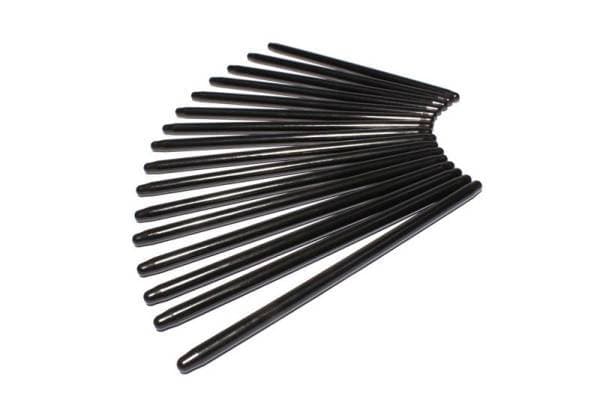 The Pushrod is one of the most important pieces of the valve train, but all too often it's taken for granted. pushrods not only have to be strong enough to not fail, bend or burn up at the ends, they must also match the frequency of all the rest of the pa parts in the valve train, as well as the rpm at which the engine will be run. Today's all-out race engines demand the highest quality components at every step, and COMP Cams Hi-Tech pushrods fill that requirement. Hi-Techâ„¢ pushrods feature a one-piece design from .080" wall, seamless chromemoly tubing that ensures the ultimate in strength and durability. Ends are precision formed, yielding added thickness and strength in the critical tip area, while maintaining constant wall thickness and concentricity. The pushrods are then heat-treated for maximum strength to ensure compatibility with guide plates. They are OD ground for consistency and black-oxide finished with length and part number laser etched on the OD for ease of identification.