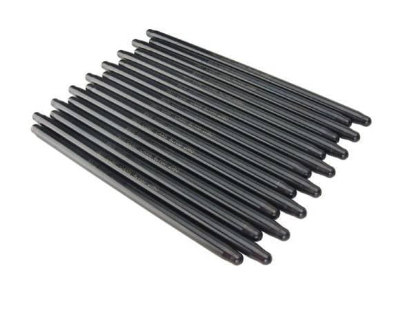 The Pushrod is one of the most important pieces of the valve train, but all too often it's taken for granted. pushrods not only have to be strong enough to not fail, bend or burn up at the ends, they must also match the frequency of all the rest of the pa parts in the valve train, as well as the rpm at which the engine will be run. Today's all-out race engines demand the highest quality components at every step, and COMP Cams Hi-Tech pushrods fill that requirement. Hi-Techâ„¢ pushrods feature a one-piece design from .080" wall, seamless chromemoly tubing that ensures the ultimate in strength and durability. Ends are precision formed, yielding added thickness and strength in the critical tip area, while maintaining constant wall thickness and concentricity. The pushrods are then heat-treated for maximum strength to ensure compatibility with guide plates. They are OD ground for consistency and black-oxide finished with length and part number laser etched on the OD for ease of identification.