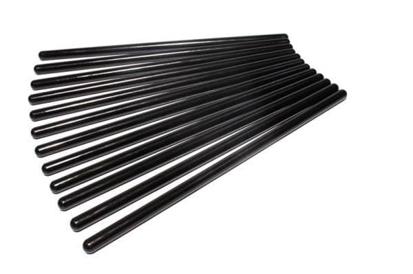The Pushrod is one of the most important pieces of the valve train, but all too often it's taken for granted. pushrods not only have to be strong enough to not fail, bend or burn up at the ends, they must also match the frequency of all the rest of the pa parts in the valve train, as well as the rpm at which the engine will be run. Today's all-out race engines demand the highest quality components at every step, and COMP Cams Hi-Tech pushrods fill that requirement. Hi-Tech pushrods feature a one-piece design from .080" wall, seamless chromemoly tubing that ensures the ultimate in strength and durability. Ends are precision formed, yielding added thickness and strength in the critical tip area, while maintaining constant wall thickness and concentricity. The pushrods are then heat-treated for maximum strength to ensure compatibility with guide plates. They are OD ground for consistency and black-oxide finished with length and part number laser etched on the OD for ease of identification.