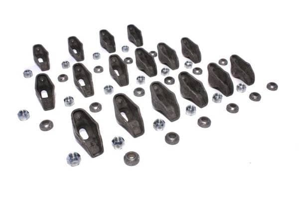 These nitrided COMP Cams High Energyâ„¢ Steel Stud Mount Rocker Arms designed for Chevy V8 265-400 Applications feature a 3/8" Stud diameter and 1.5 ratio. High Energyâ„¢ Rockers help eliminate the noise and slop associated with older worn and high mileage stock Rocker arms. With a long slot for higher than stock lift Camshafts, these Rocker arms are an excellent replacement choice for engine rebuilds using either stock or High Energy Camshaftsâ„¢. These Rockers have been nitrided to increase surface hardness for improved initial and long-term wear characteristics. The nitriding process increases hardness by causing an infusion of nitrogen molecules into the material's surface. This improves both the lubricity and wear resistance of the material.Excellent replacement Rocker arms for engine rebuilds with a stock or High Energy Camshaftâ„¢Help to eliminate noise and slop associated with worn or high mileage stock Rocker armsInclude adjusting nuts and pivot balls where requiredFeature a long slot for higher than stock lift CamshaftsNitrided Rocker arms designed for higher spring pressures and hardened Pushrods
