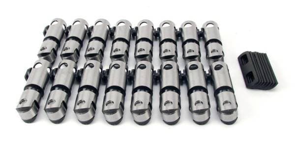 Specifically engineered for any SBC application using small base circle cams, Solid body with oil band, set of 16 lifters. NOTE: Representational Photo of Typical Lifter Set