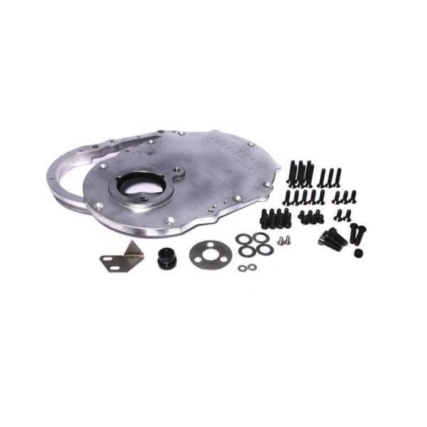 Eliminate timing cover flex which causes erratic ignition timing. Allow Camshaft to be replaced without disturbing the oil pan Seal. Simple endplay adjustment with dial indicator access hole. Integrated timing pointer simplifies ignition timing checks. Compatible with all water umps and most Gear drives.