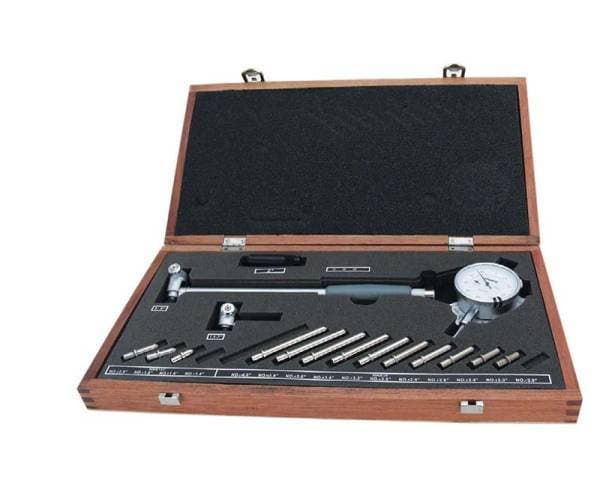 Take on all measuring projects with our Dial Bore Gauge Combination kit. This kit includes our 2-6" bore gauge set along with a special adapter and anvil/shim kit for our 1.4" to 2.4" set. Also included is our .0005" dial indicator.