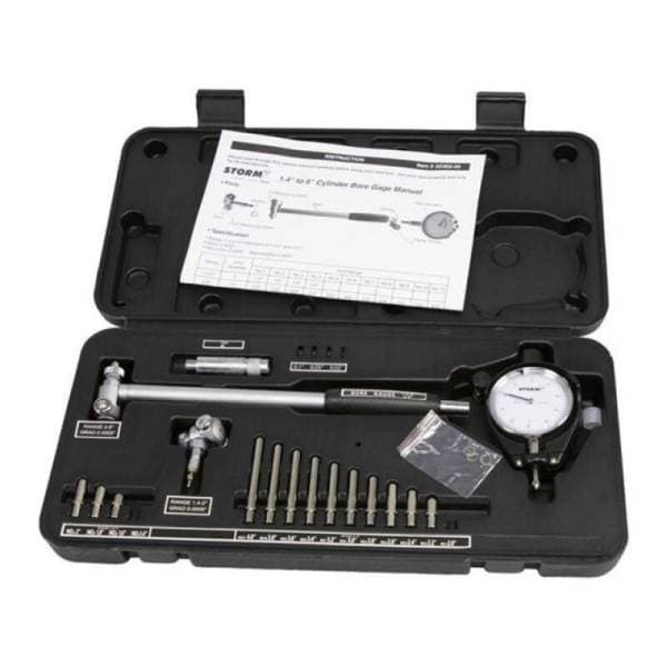 Take on all measuring projects with our Dial Bore Gauge Combination kit. This kit includes our 2-6" bore gauge set along with a special adapter & anvil/shim kit for our 1.4" to 2.4" set. Also included is our .0005" dial indicator.