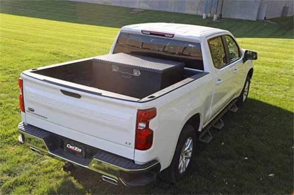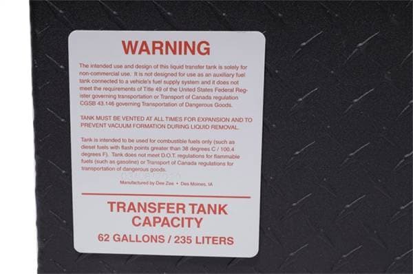 Dee Zee Combo Tanks - The convenience of a utility chest connected to a liquid transfer tank. Constructed of heavy duty .125 Brite-Tread aluminum. Radius curve design eliminates key weld pressure points. Aluminum is durable light weight and eliminates the worry of rust. Tanks feature stability baffles, 3/8 in. drainage plug. Tool box offers lockable storage with high quality stainless steel paddle handles and features gas shocks. Coated with NRT(TM) (No Rust Technology) black powder coat for optimal ruggedness and resistance against corrosion.Tanks are intended for private use (non-commercial). Not designed for use as an auxiliary fuel system. Not designed for use as an auxiliary fuel system. Does not meet title 49 of the United Stated Federal Registry governing transportation.