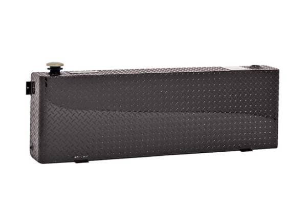 Dee Zee Transfer Tanks - A safe and convenient means for transporting non-flammable liquids. Constructed of Brite-Tread aluminum. Black powder coat finish. Radius curve design eliminates key weld pressure points. Feature 3 stability baffles, lockable cap, 3/8 in. drainage plug, and venting coupler. Intended for private use (non-commercial). Not designed for use as an auxiliary fuel system. Not for use with gasoline. Does not meet title 49 of the United Stated Federal Registry governing transportation.