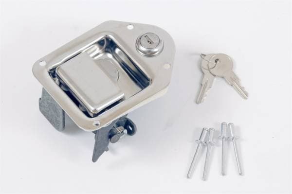 Dee Zee Tool Box Accessories - Replacement Latch. A stainless steel, locking latch. Use as a replacement for Dee Zee tool boxes with a 'post style' latch. Comes with keys, weather resistant gasket and rivets for installation. Latches may optionally be installed with bolts and nuts (not provided).