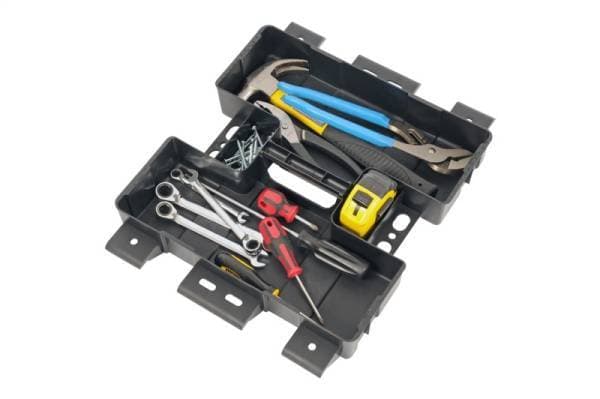 Dee Zee Tool Box Accessories - Tool Box Tray. Add a sliding tray to your Dee Zee tool box. Injection molded plastic tray fits standard width Dee Zee tool boxes. Molded dividers, split tray into compartments to organize your smaller items. Built in handle makes the tray easy to slide, or remove and take with you. 18 in. x 15.5 in.