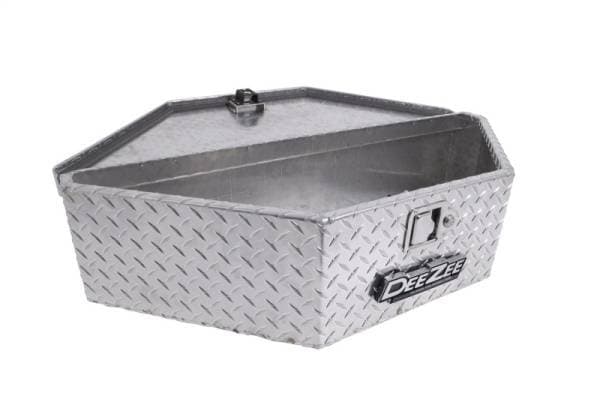 Dee Zee Tool Box - Triangle Tool Box for trailer tongues. Constructed of strong Brite-Tread aluminum with triangle design. Built to mount onto trailer tongues. Features lockable stainless steel paddles handles and gas shocks to assist in opening. Works well for storage wherever you may need it.