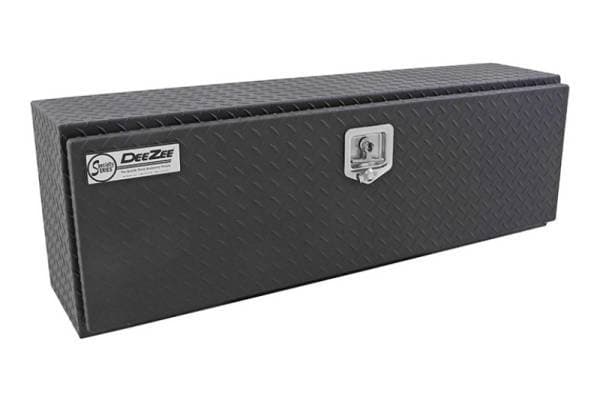 Dee Zee Tool Box - Topsider provides handy storage on top of your trucks bed rail. Constructed of durable Brite-Tread aluminum. Texture Black powder coat, provides a matte black finish while it protects and prevents oxidation. Drop-down doors provide quick access to your tools. Locking stainless steel T-handle latches. C-Channel design resists leaks, incorporating a one-piece neoprene rubber bulb seal.