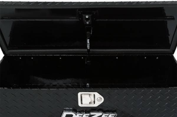 Dee Zee Tool Box - Specialty ATV/Universal Storage Chest. Constructed of durable Brite-Tread aluminum. Black-Tread powder coat, provides a gloss black finish while it protects and prevents oxidation. Other features: lockable push-button handles, dampened gas shocks, closed cell foam gasket, and self-adjusting strikers. Mounting hardware included. Provides lockable storage for your ATV or anywhere else you need it. 32 in. x 12 in. x 9 in.