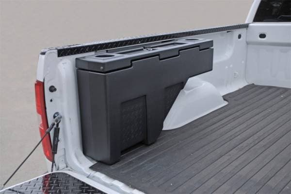 Dee Zee Tool Box - Wheel Well Box. Adds storage while leaving your bed open for hauling cargo. Constructed of strong lightweight plastic. Lockable lid. Fits 6 and 8 bed pickups.