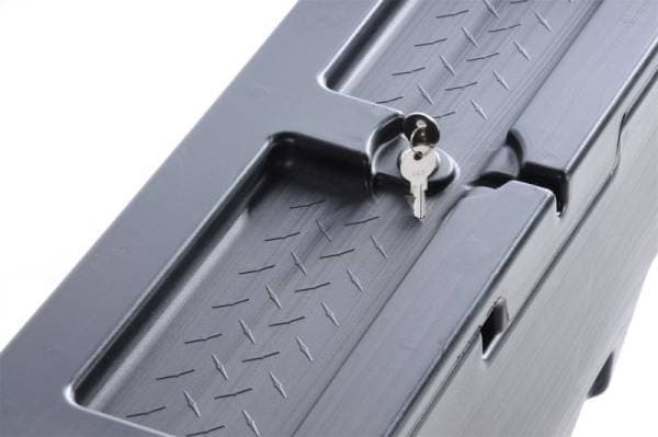 Specialty Series Wheel Well Tool Box; Volume 2.2 cu. ft.; L 37 in. x W 7.75 in. x H 19.5 in.; Reversible Lid; Poly