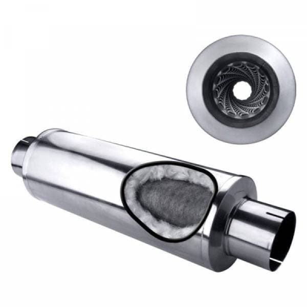 Exhaust Muffler, 4" LOUVERED PACKED MUFFLER 30" OVERAL, 24" BODY, 7" CASE 409 STAINLESS STEEL