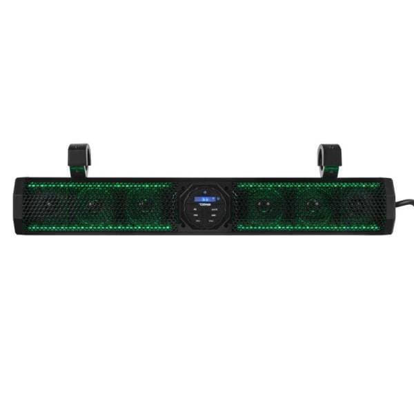 The SB26BTXRGB 600-Watt Soundbar delivers powerful, marine-grade audio that's built for the outdoors. Includes Bluetooth®, USB and Aux inputs, plus five EQ presets to fit a wide range of applications and provide that custom sound. Built- in RGB LED lighting adds a vibrant pop of color, setting the mood for every ride or adventure.