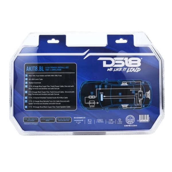 DS18 8-GA Amplifier Install Kit Advance- Blue