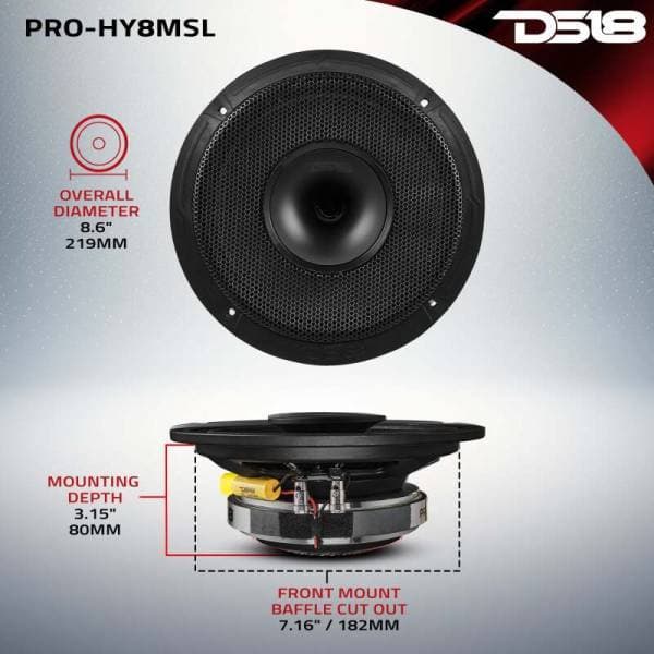 DS18 8in 200 Watts RMS 8 ohm Mid-Range Loudspeaker Shallow Grill Included