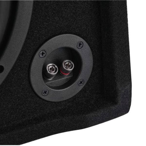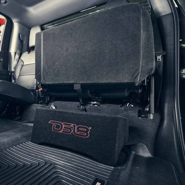 DS18 Single 10in Shallow Subwoofer and Enclosure 600 Watts RMS Downfiring Sealed Black Carpet