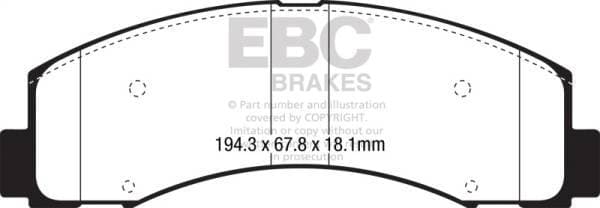 The UK EFI Bristol factory of EBC Brakes has used new ECO friendly technology to develop a brake pad that has unusually high friction levels yet still has good manners for street use with brake effect being strong from cold when the brake is first applied. The race pedigree of the material used also guarantees effective stopping up to temperatures exceeding 1400 F well above the maximum experienced in heavy braking, towing or downhill descents. Winter testing in Ohio on a fleet five popular light trucks showed us the proof on cold braking in the worst wet and cold conditions where many performance brakes would not even start to show good brake effect. So these are pads that have an extremely wide range of usability. The new carbon granule based Extra Duty material is also rotor friendly, minimal in dust and noiseless and each set is supplied with revolutionary NUCAP piston insert shims, another first from EBC