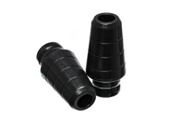 Energy Suspension® performance bump stops help cushion a collapsing suspension, preventing bottoming-out and expensive vehicle damage. Hyper-Flex™ performance polyurethane bump stops for control arms, traction bars, leaf springs, etc. are guaranteed to last longer and operate more efficiently than original rubber stops.The smaller, general purpose bullet shaped snubber is ideal for control arms. The low profile button head is for use when clearance is limited. Our large competition race style bump stops smooth out compression better and have a large reinforced metal plate welded to the mounting plate and molded-in. Each style is specially designed for a perfect and custom fit and each style has it's own durometer, hardness, characteristics. Energy's wide selection of bump stops are available in red or black color.